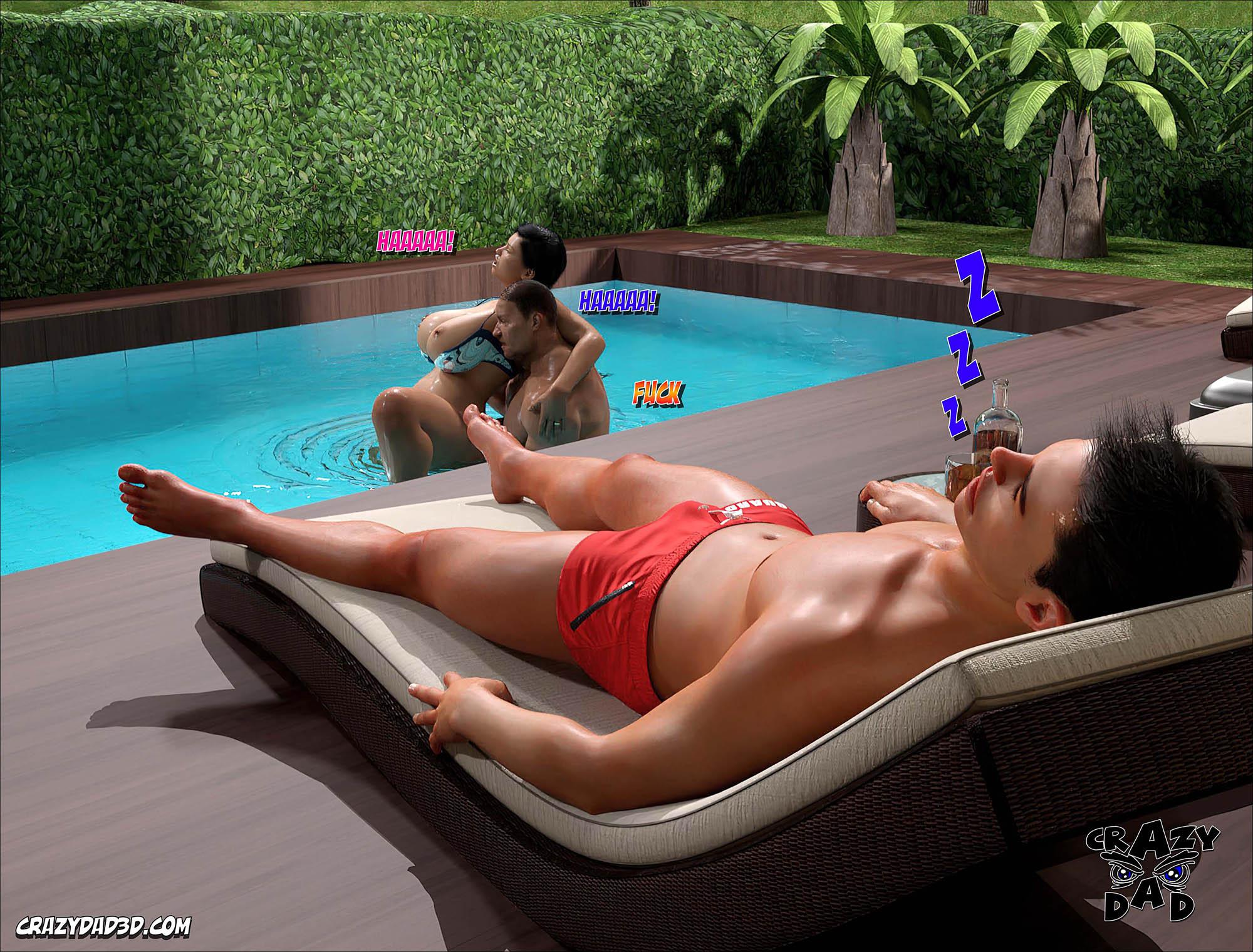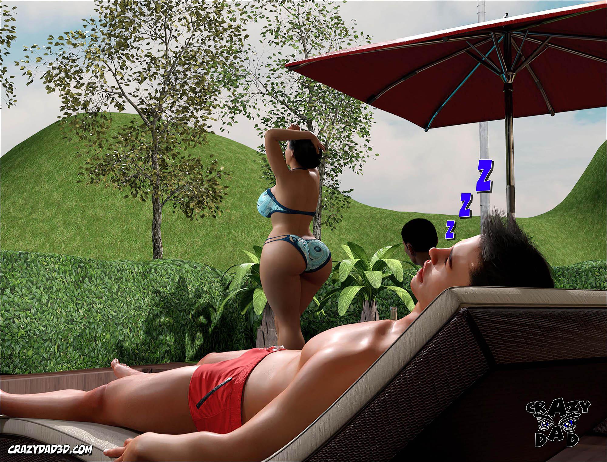 Amanda estava com a sua família na área da piscina. Então ela entra para piscina e seu pai vai tomar banho junto com ela. Enquanto o marido dela e o filho dela fica deitado perto da piscina. E Amanda e o pai dela começa a transar dentro da piscina. E quando a Amanda termina ela sai da piscina e nota que o filho dela está acordado. Então ela pergunta se ele quer alguma coisa ele disse que quer transar com ela. E ela sai andando em direção a cozinha e chama ele para ir junto pois ela vai dar o que ele quer.
