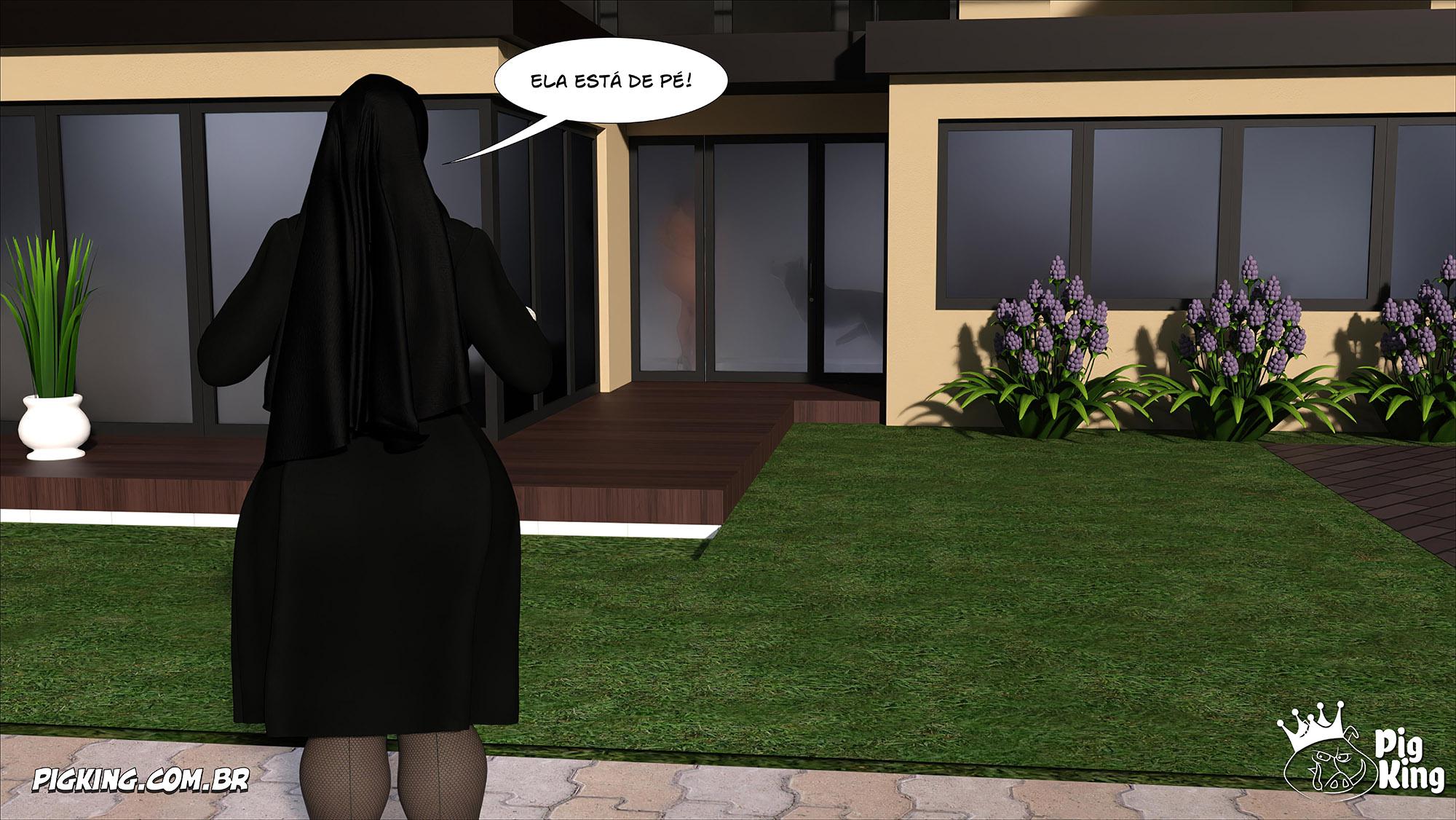Amanda estava sozinha em casa então ela encontrou o pet que ela conheceu há poucos dias na rua. E ela levou ele para dentro da sua casa. Então Amanda começou a transar com o pet na sala da sua casa onde a porta que sai para a rua é uma porta de vidro. E a freira Isabela que estava passando na rua viu pelo vidro embaçado que tinha alguém transando com um pet dentro da casa.