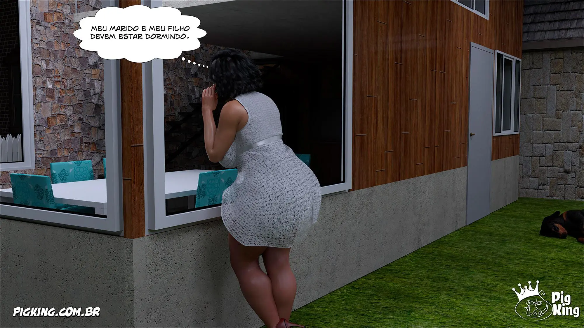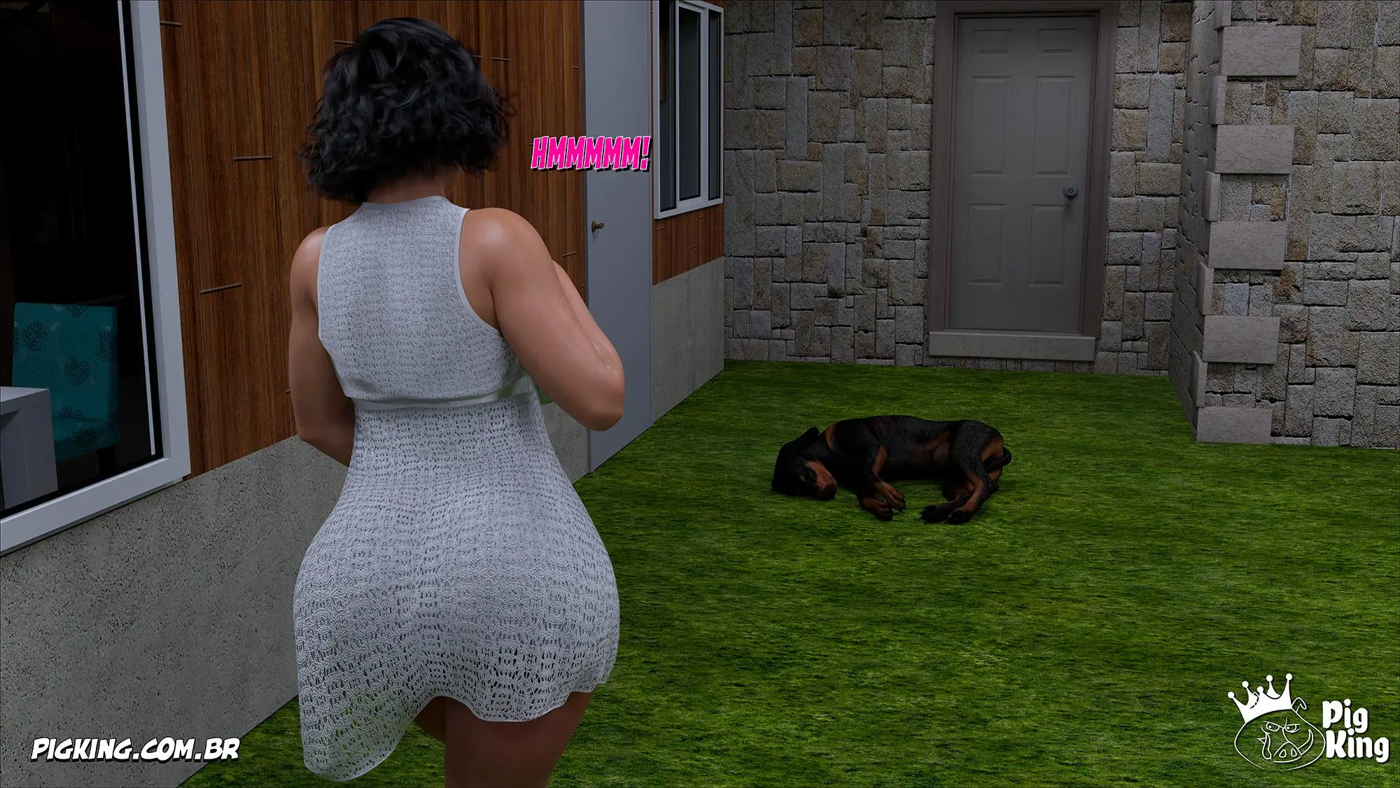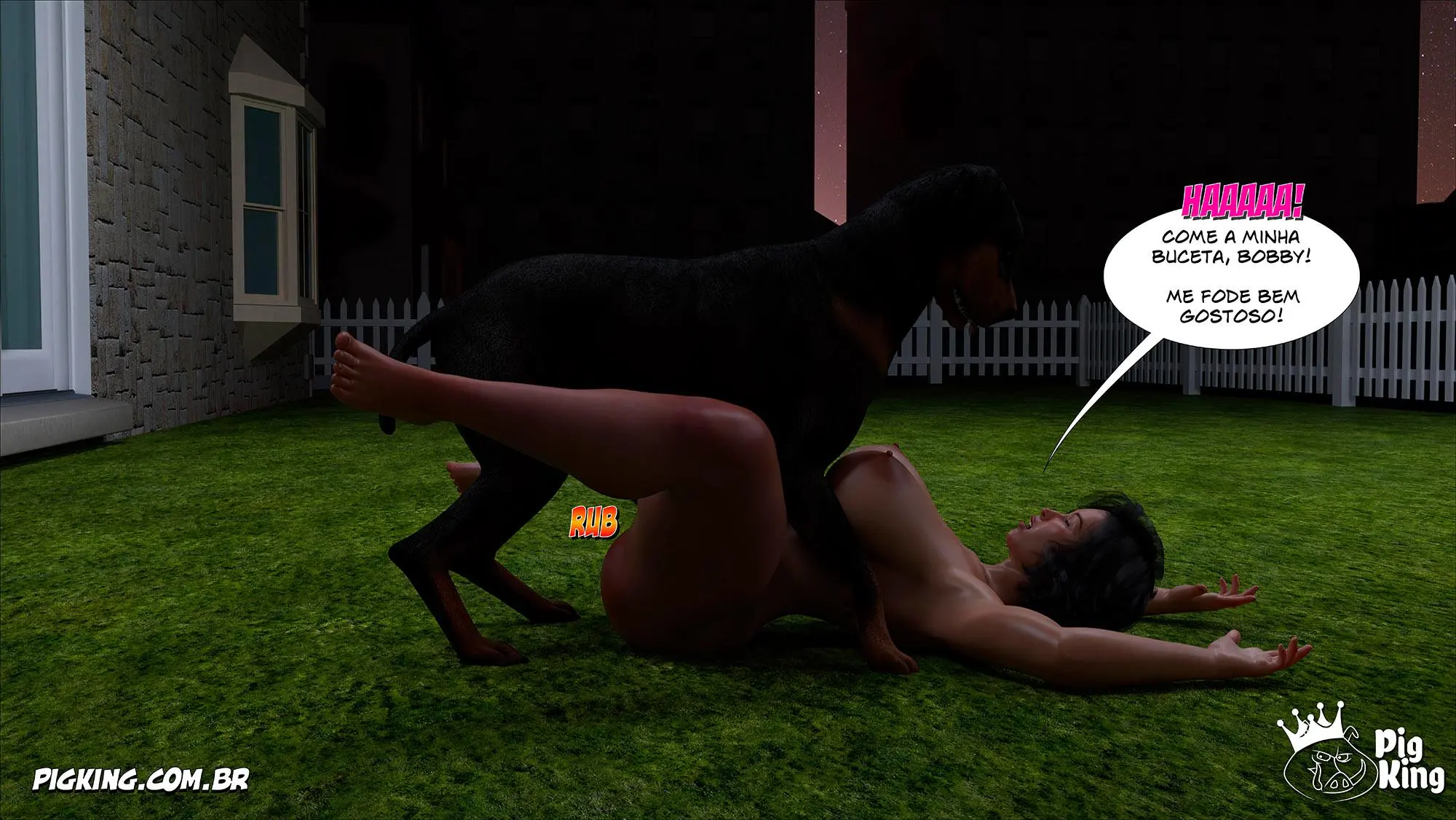 Mom’s Help 67. Nancy estava em um beco transando com o pet e tinha um mendigo olhando. E ele ficou com tesão e ele foi ate ela e tomou o lugar do pet e começou a foder a gostosa. E eles foderam ate ficarem satisfeitos. E ela volta para casa e acaba encontrando o seu pet que ela estava procurando no quintal da sua casa, Então ela começa a foder com ele.